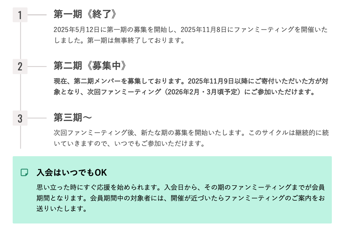 ※寄付は、個人、法人どなたでもご支援頂くことができます。 ※メンバー登録が完了すると、各プランのメンバー特典の送付、1万円を超えるご寄付についてはホームページへお名前を掲載致します。 ※個人様のお名前はニックネームでもご掲載は可能です。ご希望の方は、お問い合わせフォームよりご連絡をお願い致します。 ※ご掲載をご希望でない方は、無記名でもご寄付いただけます。 ※寄付控除はできませんので予めご了承ください。