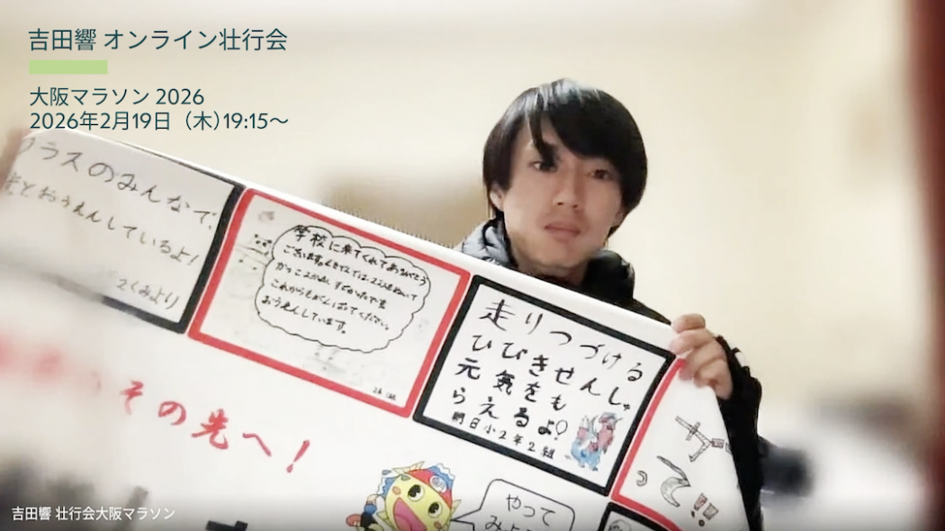2026年2月22日。大阪のスタートラインに立ちます。人生で初めて挑むフルマラソン。42.195kmという長い距離の先には、今までとは違う、新しい吉田響の姿。まだ誰も、本人さえも知らない領域が待っています。