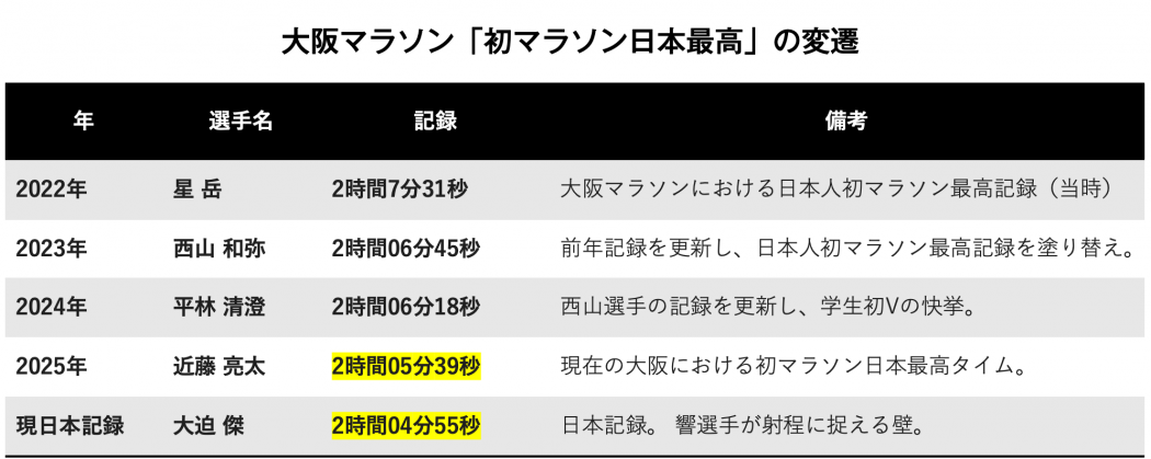その中で、初マラソンの舞台として最も適しているのはどこかと考えたとき、ペース設定やコース特性、時期を含めて、一番ちょうどいいと踏んだのが大阪マラソンでした。タイミング的にも、少し後ろにずらそうかと迷った時期もありましたが、最終的には今が最適だと判断しました。』